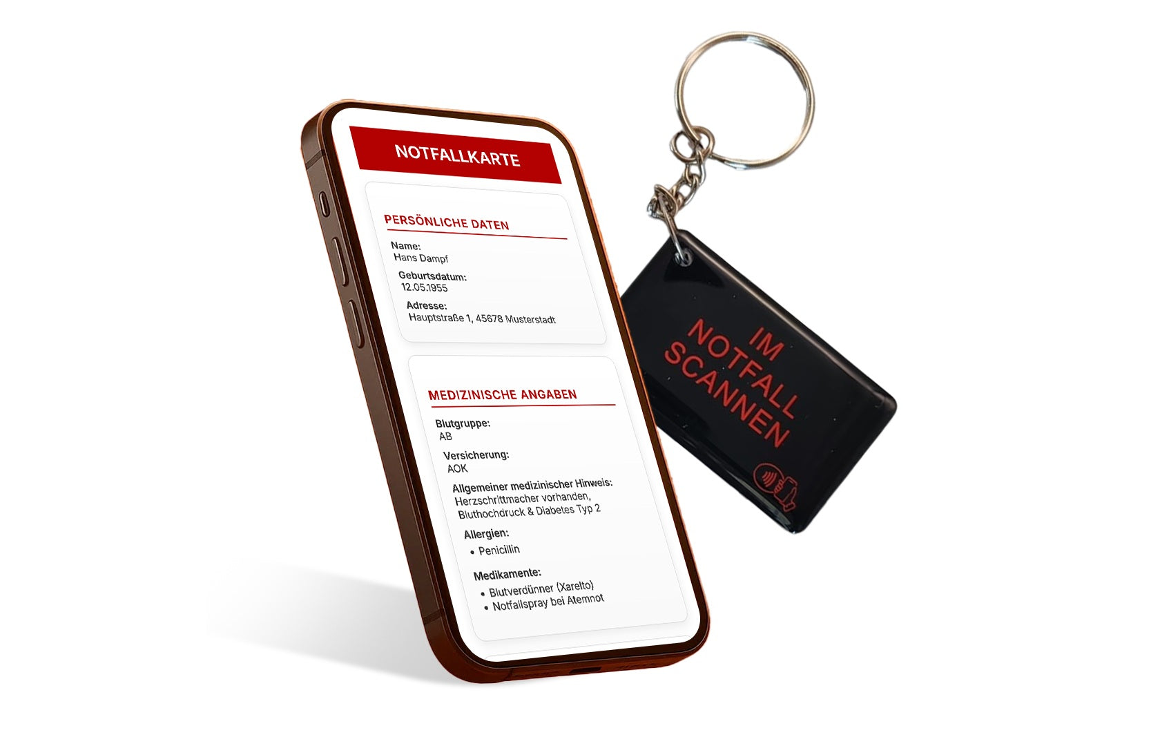 Im Ernstfall zählt jede Sekunde – und oft ist es schwer, die richtigen Informationen weiterzugeben. Mit dem digitalen Notfallpass trägst Du die wichtigsten Gesundheitsdaten und Notfallkontakte immer bei dir. Einfach den NFC-Tag mit einem Smartphone auslesen, und Helfer erhalten sofort die Angaben, die Leben retten können. Eine kleine Info, die im entscheidenden Moment einen großen Unterschied macht.