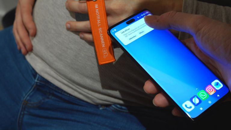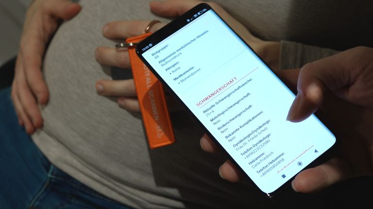 Ersthelfende halten ihr Smartphone an den Anhänger und sehen sofort die hinterlegten Informationen – ganz ohne App.