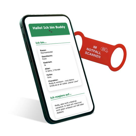 Ersthelfende halten ihr Smartphone an den Anhänger und sehen sofort die hinterlegten Informationen – ganz ohne App.